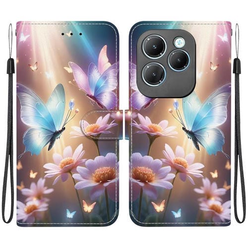 Funda de Cuero con Dibujo y Textura de Cristal para Infinix Hot 50I Smart 9 (Mariposas Azules)
