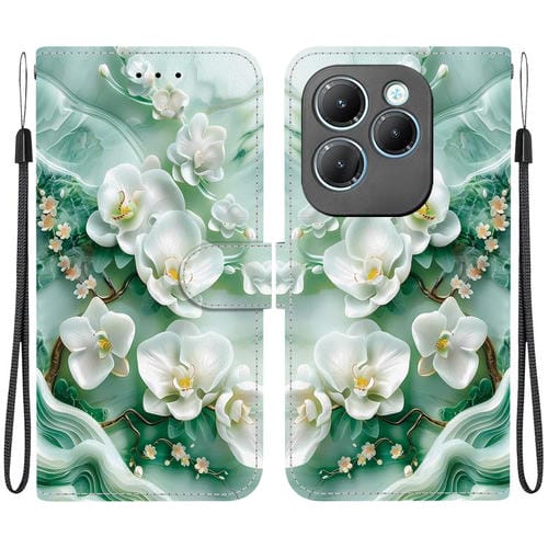 Funda de Cuero con Dibujo y Textura de Cristal para Infinix Note 40 Pro 4G/5G/Pro+ (Flores de Jade)