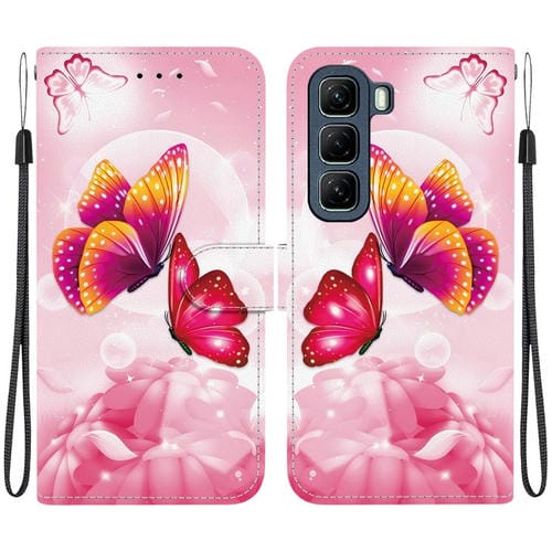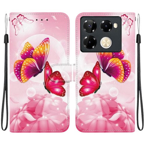 Funda de Cuero con Dibujo y Textura de Cristal para Infinix Note 40 Pro 4G/5G/Pro+ (Mariposas Rosas)