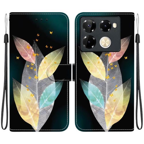 Funda de Cuero para Infinix Note 40 4G con Dibujo de Hojas de Colores y Textura de Cristal