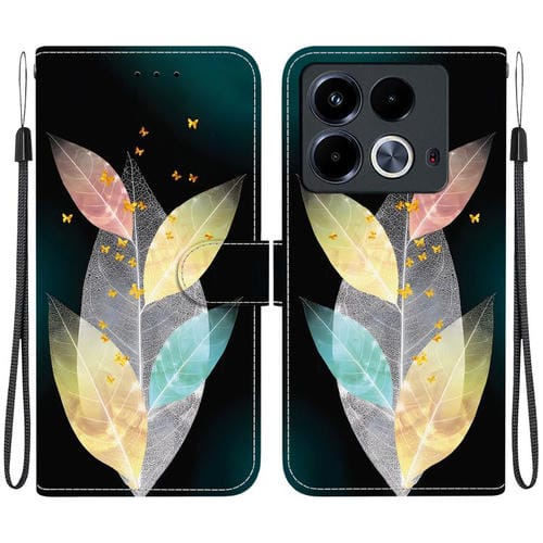 Funda de Cuero para Infinix Note 40 Pro 4G/5G/Pro+ con Dibujo y Textura de Cristal (Hojas de Colores)