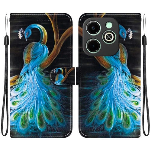 Funda de Cuero para Infinix Smart 8/HD/Hot 40I con Dibujo y Textura de Cristal (Pavo Real)