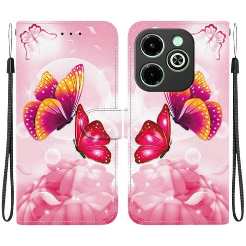 Funda de Cuero con Dibujo y Textura de Cristal para Infinix Hot 50I Smart 9 (Mariposas Rosas)