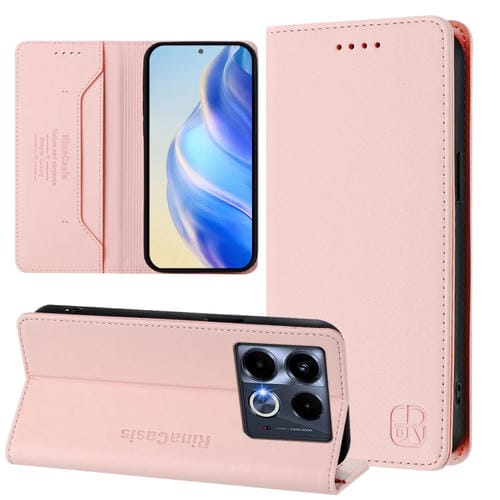 Funda de Cuero con Doble Pliegue y Succión Magnética para Infinix Note 30 4G/5G Rc01 (Rosa)
