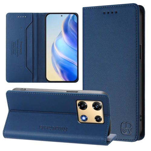 Funda de Cuero con Doble Pliegue y Succión Magnética Rfid para Infinix Zero 30 5G Rc01 (Azul Oscuro)
