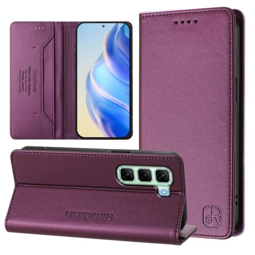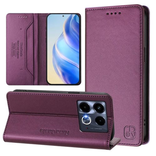 Funda de Cuero con Doble Pliegue y Succión Magnética Rfid para Infinix Note 40 5G Rc01 (Violeta)