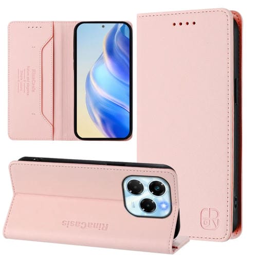 Funda de Cuero con Doble Pliegue y Succión Magnética RFID para Infinix Hot 50 5G Rc01 (Rosa)