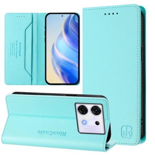 Funda de Cuero Rfid para Infinix Hot 50 5G Rc01 con Doble Pliegue y Succión Magnética (Verde Menta)