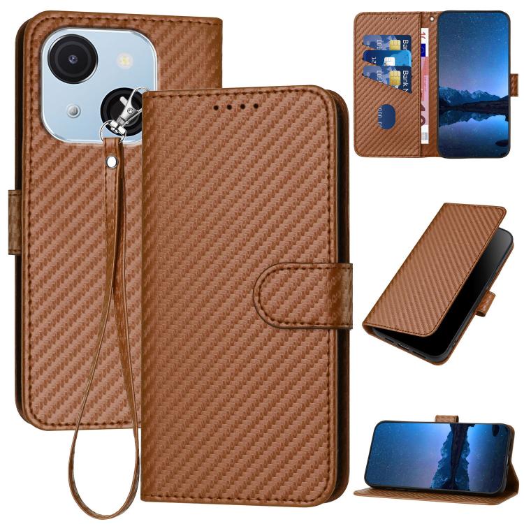 Funda de Cuero con Hebilla de Fibra de Carbono y Cordón para Teléfono Itel A48 Yx0070 (Café)