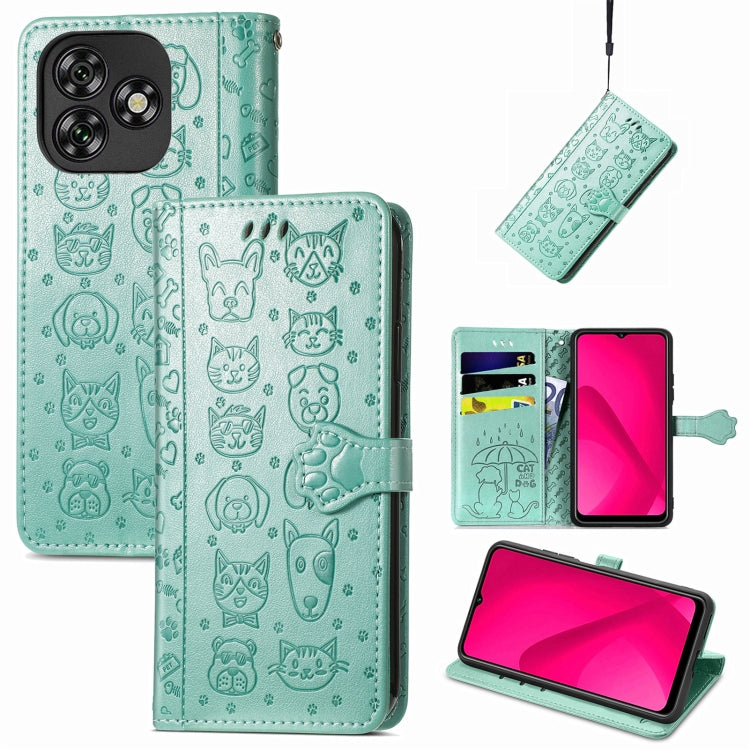 Funda de Piel con Relieve de Gato y Perro para Oukitel C53 (Verde)