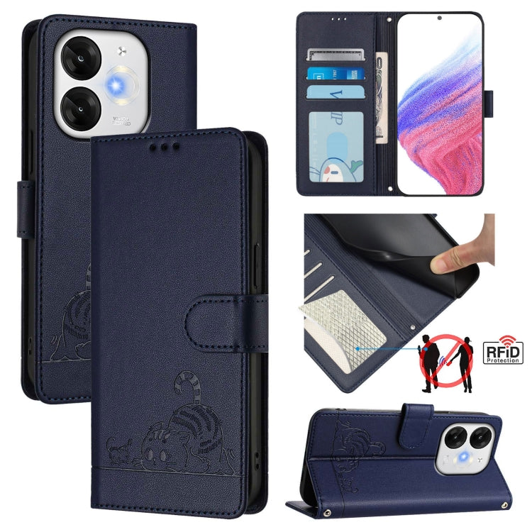 Funda de Cuero Rfid para Teléfono Itel A80 4G con Estampado de Rata y Gato y Cordón (Azul)
