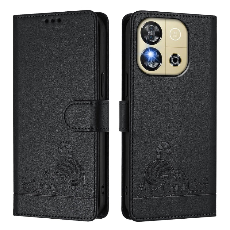 Funda de Cuero Rfid Itel A80 4G con Estampado de Rata y Gato y Cordón (Negro)