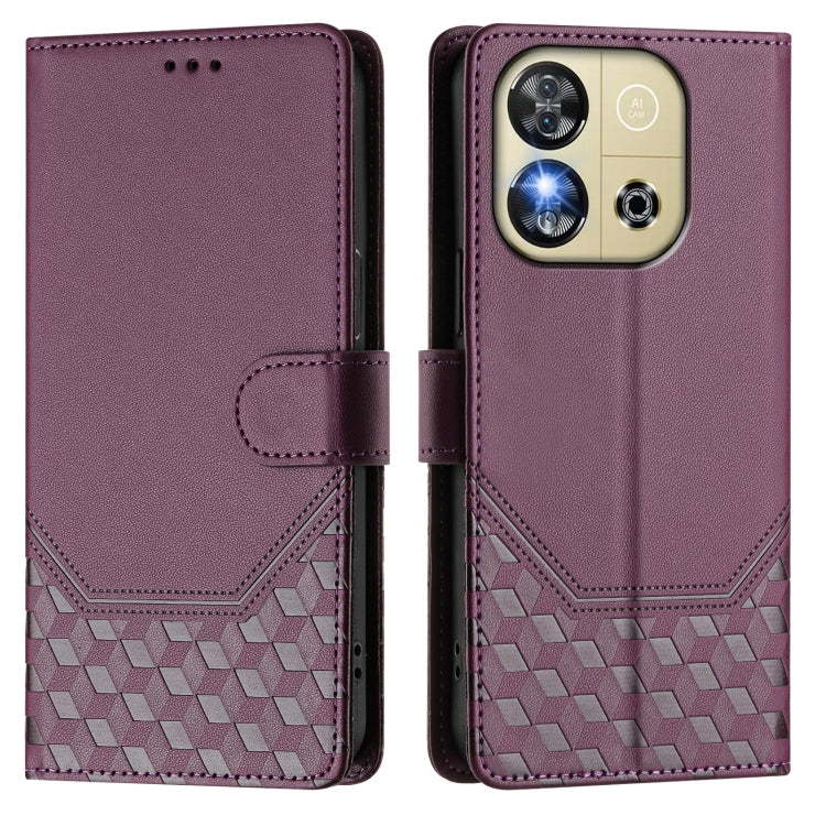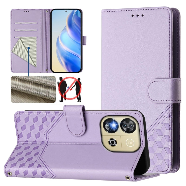 Funda de Cuero Rfid con Relieve en Panal para Oukitel C57S (Morado Claro)
