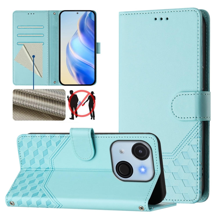 Funda de Cuero Rfid con Relieve en Panal para Teléfono Itel A80 4G (Verde Menta)