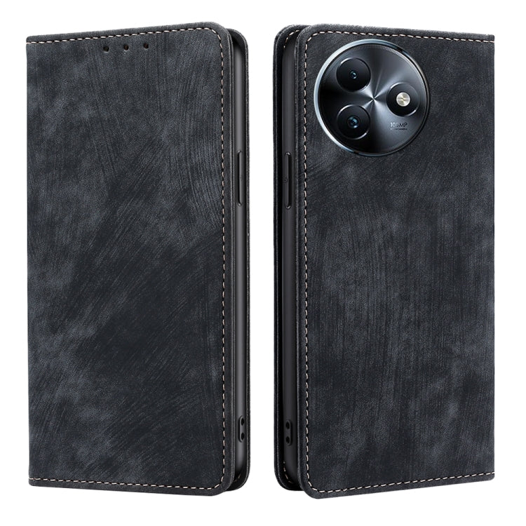 Funda de Cuero Rfid para Teléfono Itel S23+ Rc01 con Doble Pliegue y Succión Magnética (Negra)