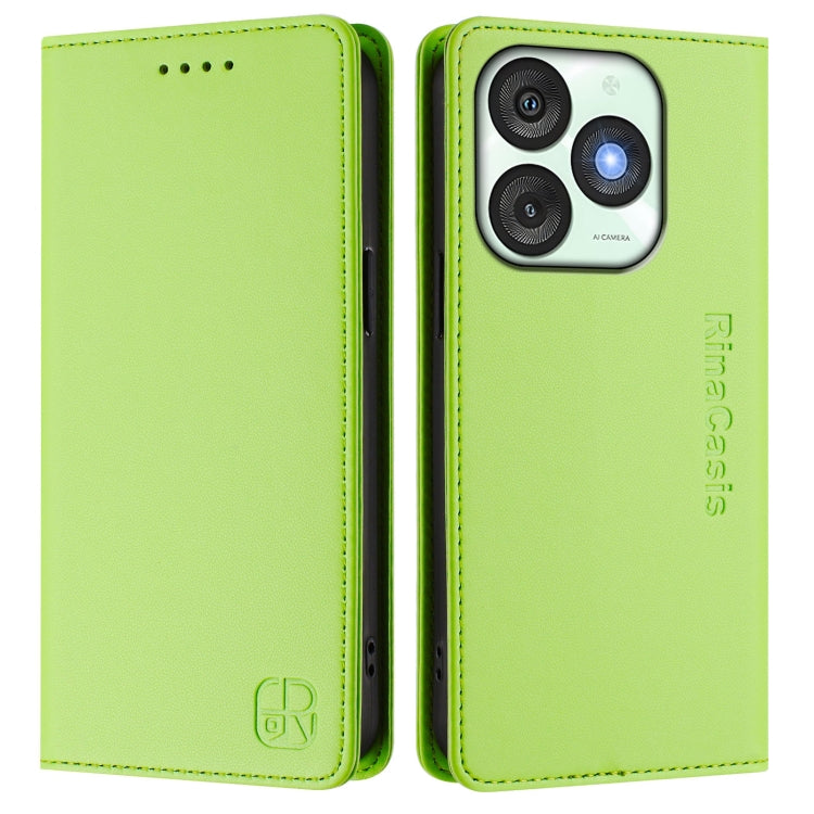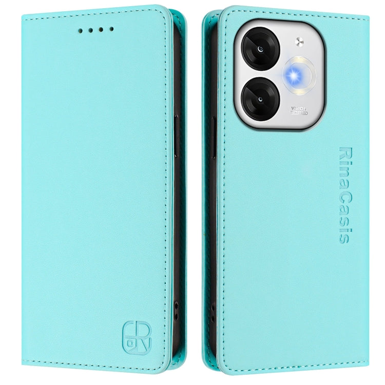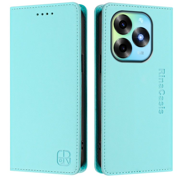 Funda de Cuero Rfid para Teléfono Itel S23+ Rc01 con Doble Pliegue y Succión Magnética (Verde Menta)