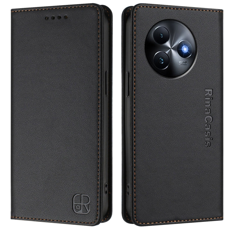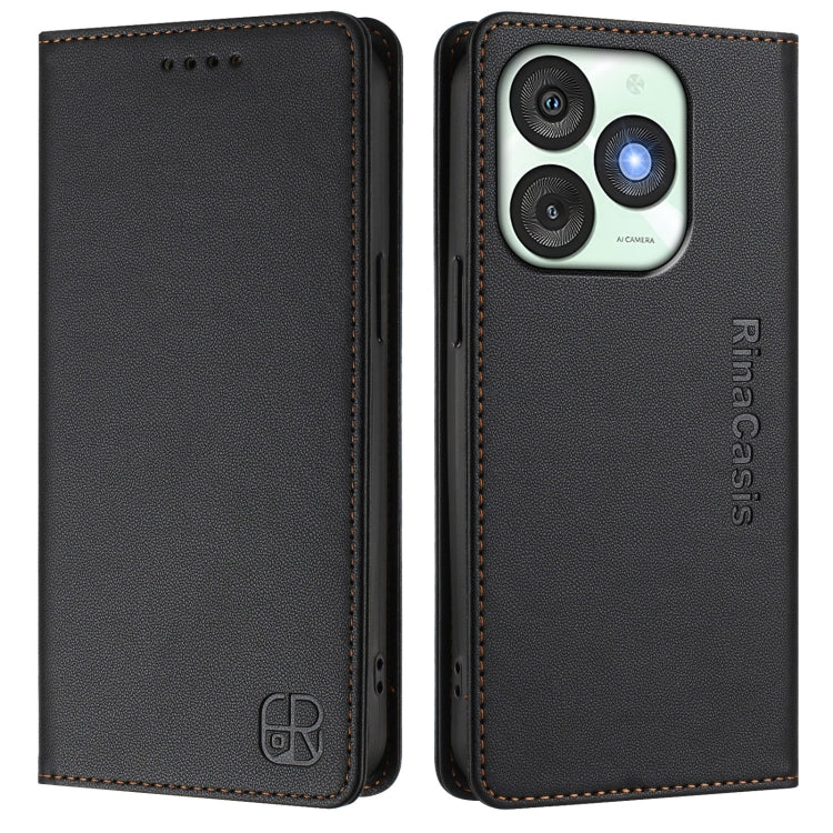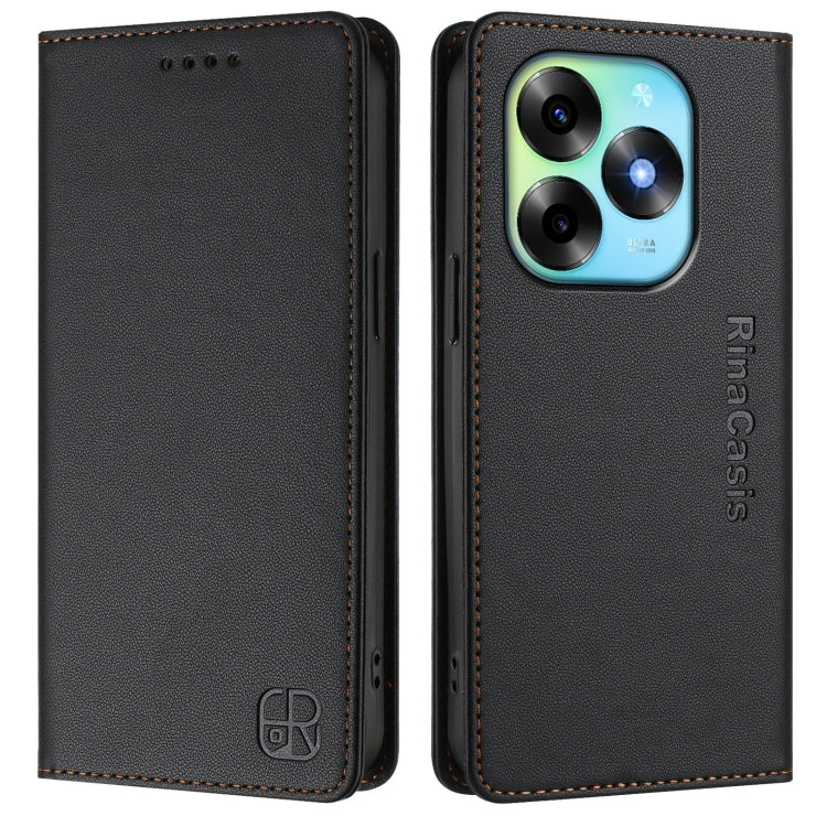 Funda de Cuero Rfid para Teléfono Itel A80 4G Rc01 con Doble Pliegue y Succión Magnética (Negra)