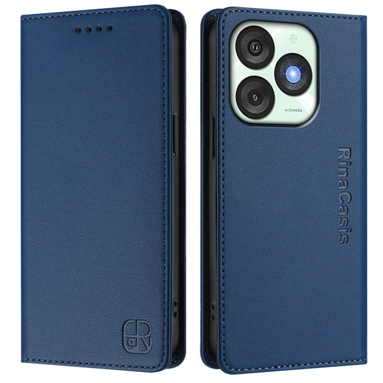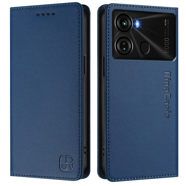 Funda de Cuero para Teléfono Itel P55 5G Rc01 con Doble Pliegue y Succión Magnética Rfid (Azul Oscuro)