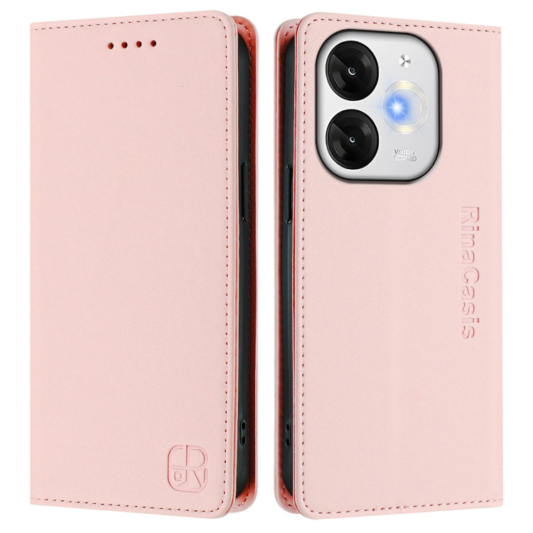 Funda de Cuero con Doble Pliegue y Succión Magnética Rfid para Itel P55 5G Rc01 (Rosa)