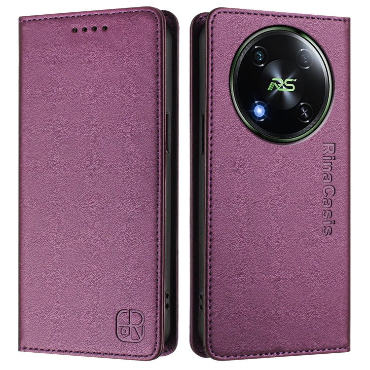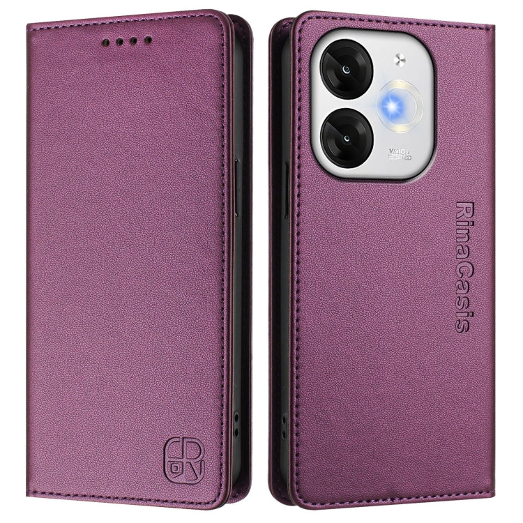 Funda de Cuero Rfid para Teléfono Itel A80 4G Rc01 con Doble Pliegue y Succión Magnética (Violeta)