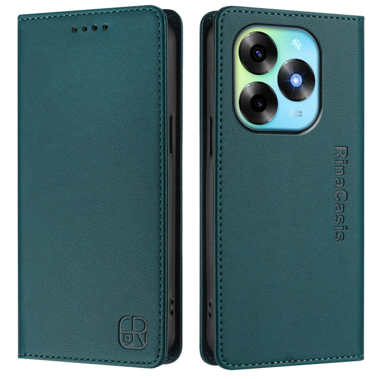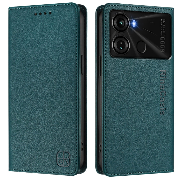 Funda de Cuero Rfid para Teléfono Itel S23+ Rc01 con Doble Pliegue y Succión Magnética (Verde Oscuro)