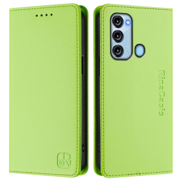 Funda de Cuero Rfid para Teléfono Itel A50 Rc01 con Doble Pliegue y Succión Magnética (Verde Hierba)