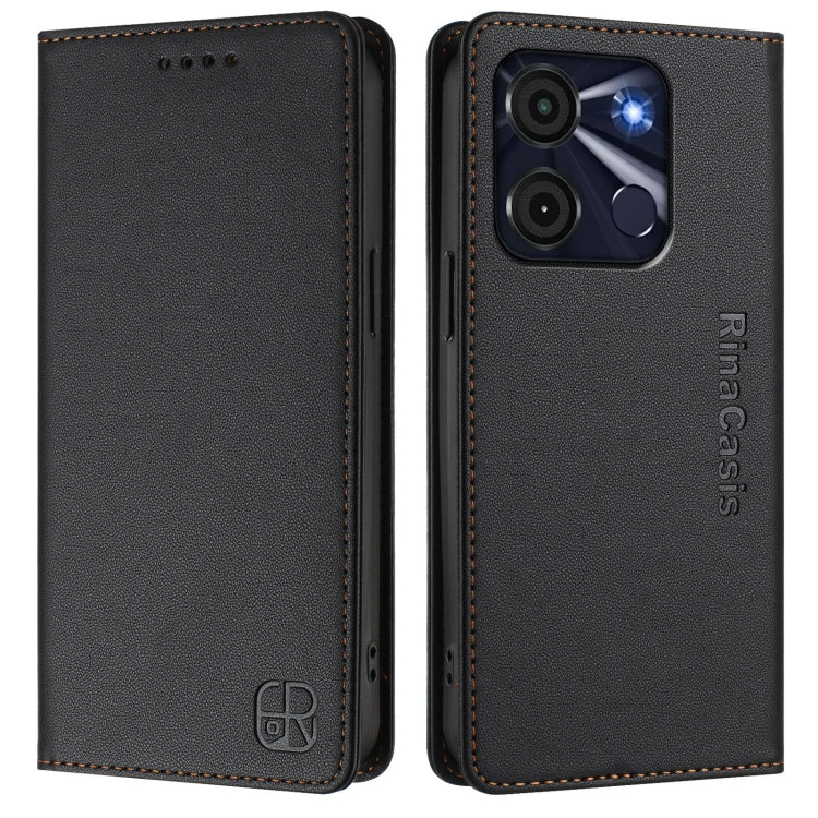 Funda de Cuero Rfid para Teléfono Itel S23/S665L Rc01 con Doble Pliegue y Succión Magnética (Negra)