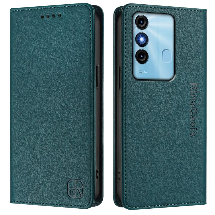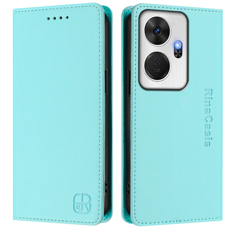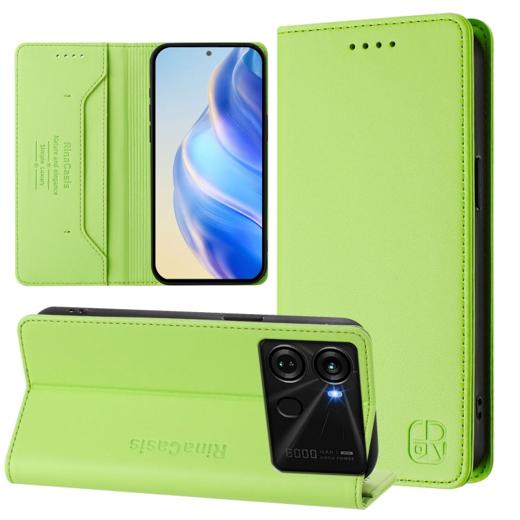 Funda de Cuero Rfid con Doble Pliegue y Succión Magnética para Teléfono Itel P55 5G Rc01 (Verde Menta)