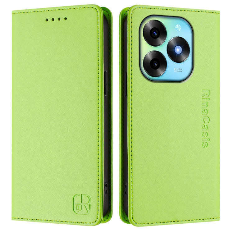 Funda de Cuero Rfid para Teléfono Itel S23+ Rc01 con Doble Pliegue y Succión Magnética (Verde Hierba)