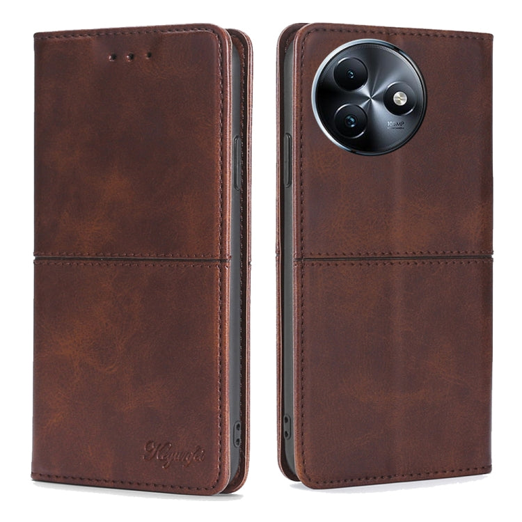 Funda de Cuero Magnética con Textura de Vaca para Itel S24 4G (Marrón Oscuro)