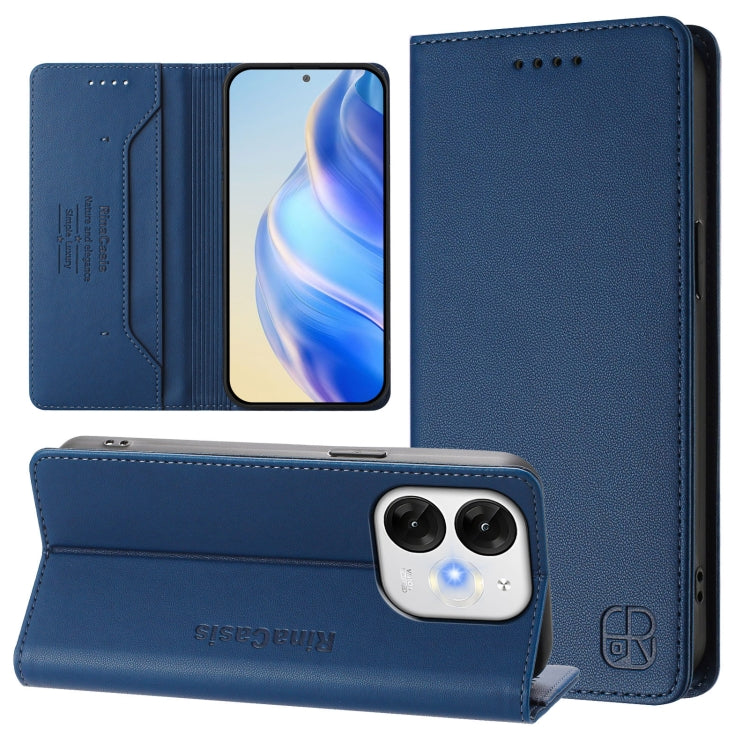 Funda de Cuero Rfid con Doble Pliegue y Succión Magnética para Teléfono Itel P55+ Rc01 (Azul Oscuro)