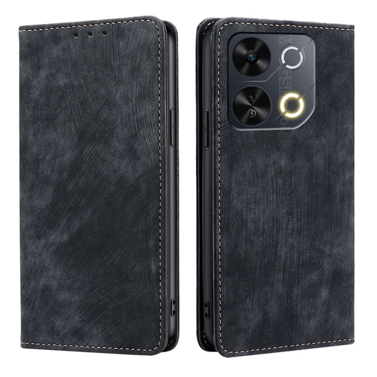 Funda de Cuero Magnética con Cepillo Antirrobo RFID para Itel A50C 4G (Negra)