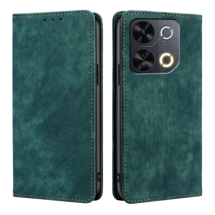 Funda de Cuero Magnética con Cepillo Antirrobo RFID para Teléfono Itel A50C 4G (Verde)