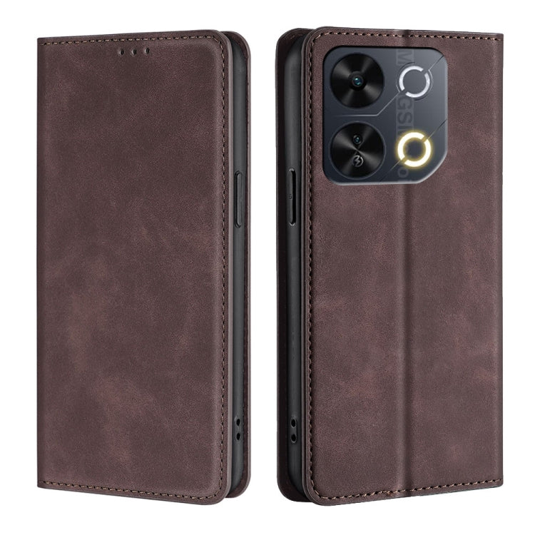 Funda Magnética con Tacto de Piel para Teléfono Itel A50C 4G (Marrón Oscuro)