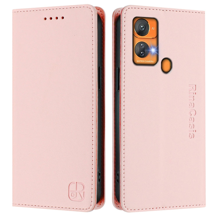 Funda Cuero Rfid con Doble Pliegue y Succión Magnética para Oukitel C53 Rc01 (Rosa)