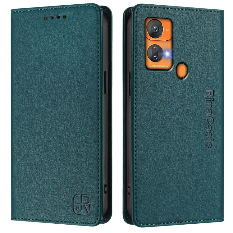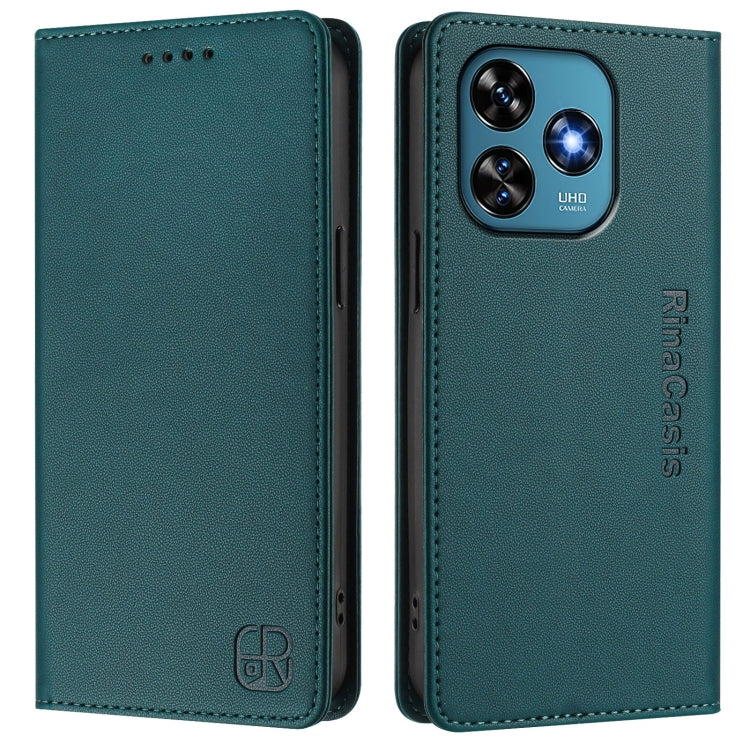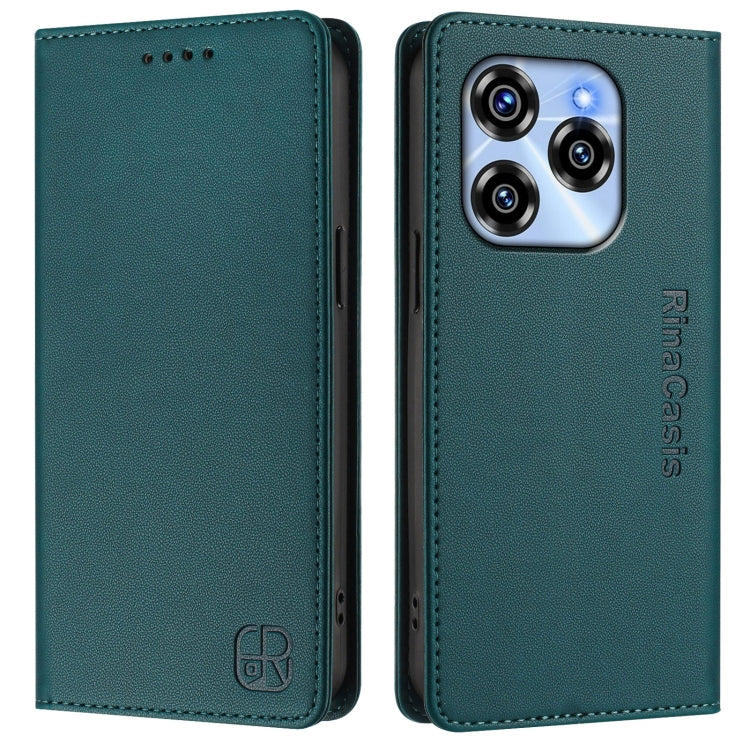 Funda de Cuero Rfid para Oukitel C53 Rc01 con Doble Pliegue y Succión Magnética (Verde Oscuro)