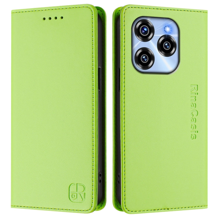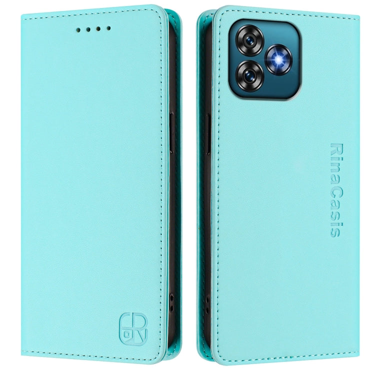 Funda de Cuero RFID con Doble Pliegue y Succión Magnética para Oukitel C53 Rc01 (Verde Menta)