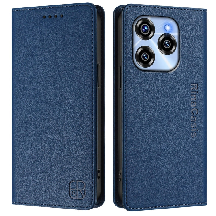 Funda de Cuero con Doble Pliegue y Succión Magnética RFID para Oukitel C53 Rc01 (Azul Oscuro)