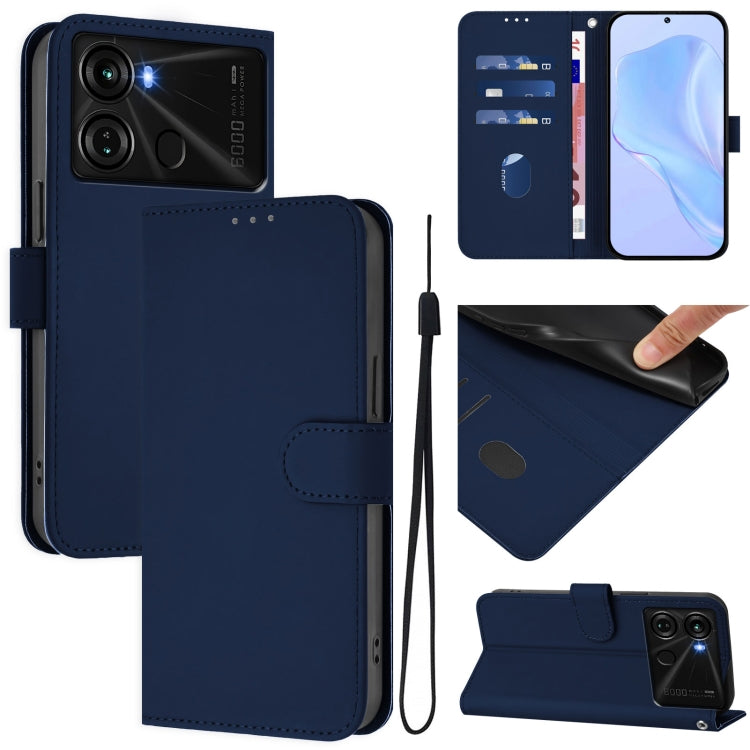 Funda de Piel con Cordón para Teléfono Itel P40 Skin Feel (Azul Marino)