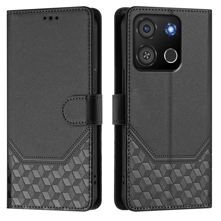 Funda de Cuero Rfid con Relieve en Panal para Teléfono Itel A60/A60S (Negra)