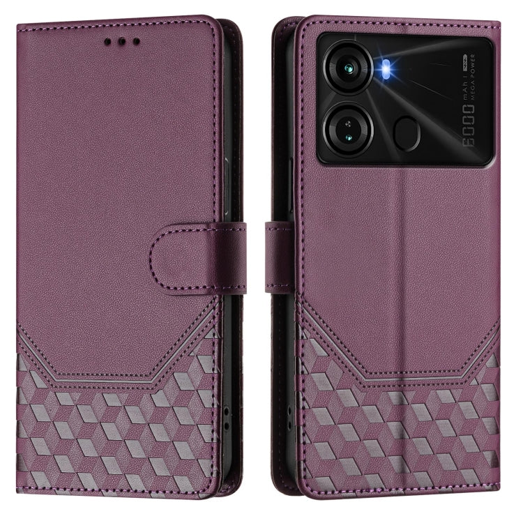 Funda de Cuero Rfid con Relieve en Panal para Teléfono Itel P40 (Violeta)