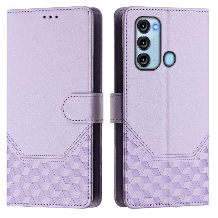 Funda de Cuero Rfid con Relieve en Panal para Teléfono Itel P55+ (Morado Claro)