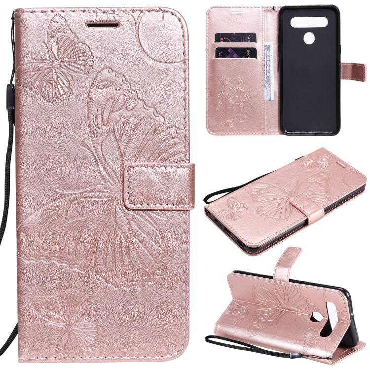 Funda de Cuero para LG K41S y K51S 3D Mariposa en Relieve con Soporte, Ranura y Cordón (Oro Rosa)