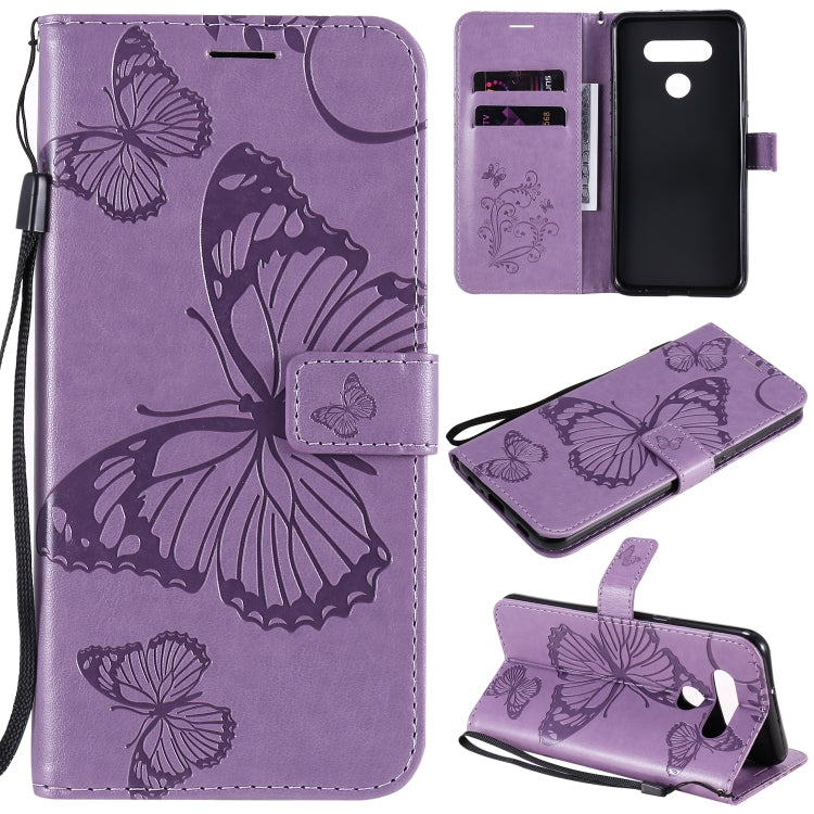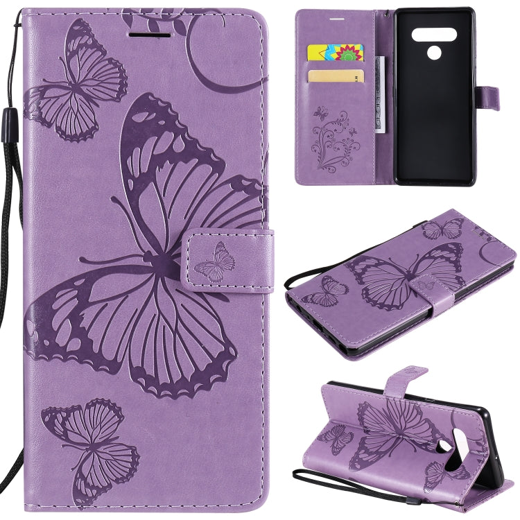 Funda de Cuero para LG Stylo 6 3D Mariposa en Relieve con Soporte, Ranura para Tarjeta y Cordón (Púrpura)