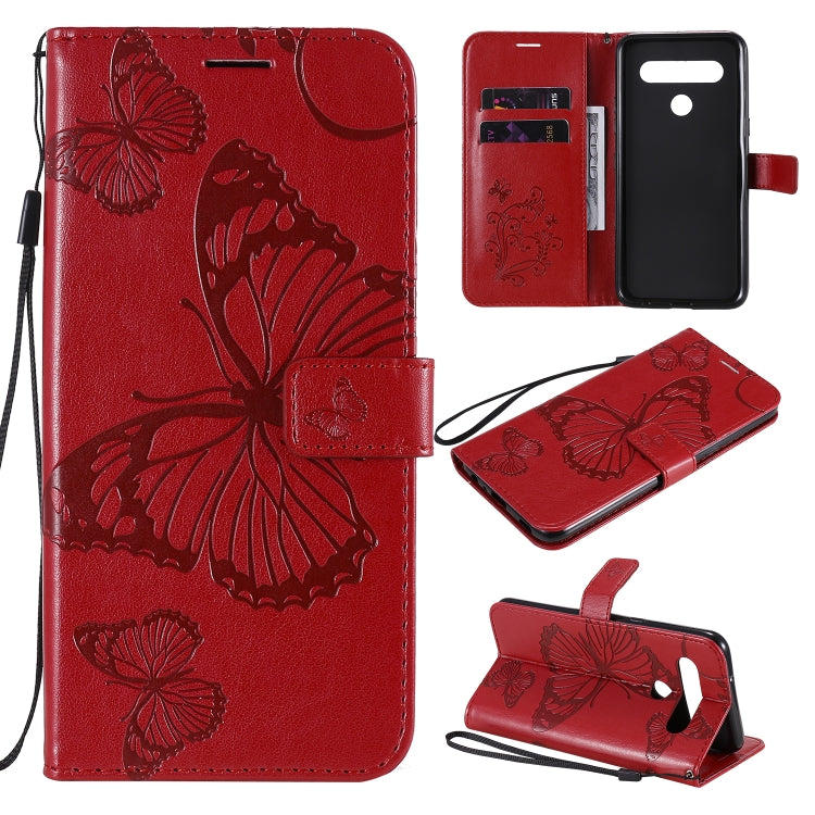 Funda de Cuero para LG K61 3D con Patrón Mariposa, Tapa Horizontal, Soporte, Ranura y Cordón (Rojo)