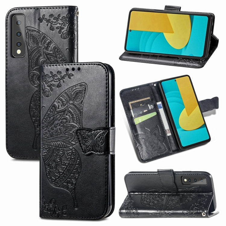 Funda de Cuero Horizontal para LG Stylo 7 Butterfly Love Flower con Soporte, Tarjeta y Lanyard (Negro)