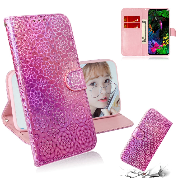 Funda para LG G8 Thinq Cuero PU con Hebilla Magnética, Soporte, Ranuras para Tarjetas y Cordón (Rosa)