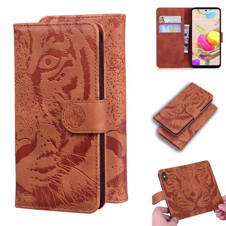 Funda de cuero horizontal para LG K42 con estampado Tiger, tarjetero y billetera (Marrón)