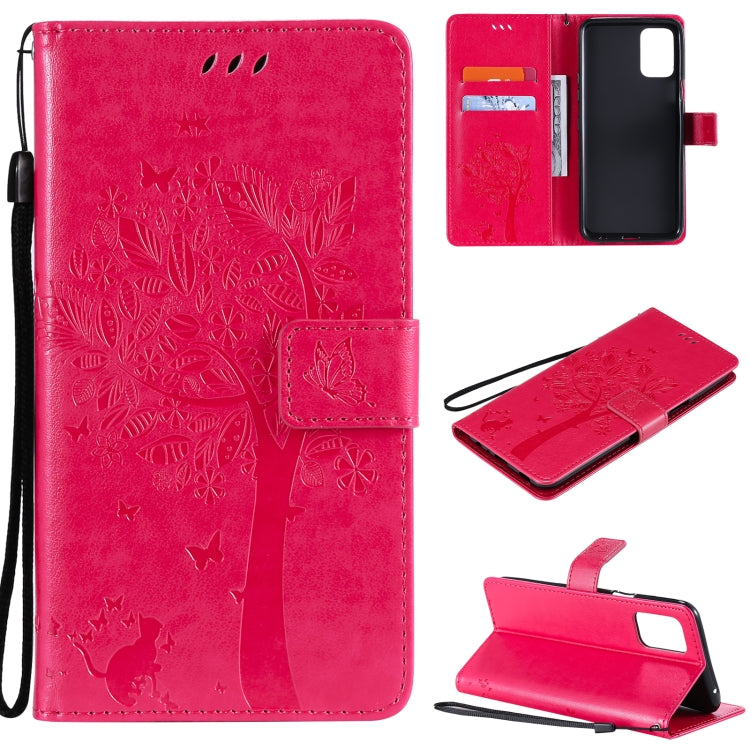 Funda para LG K92 5G con patrón Árbol y Gato, Cuero PU, Soporte, Ranuras y Cordón (Rose Rojo)