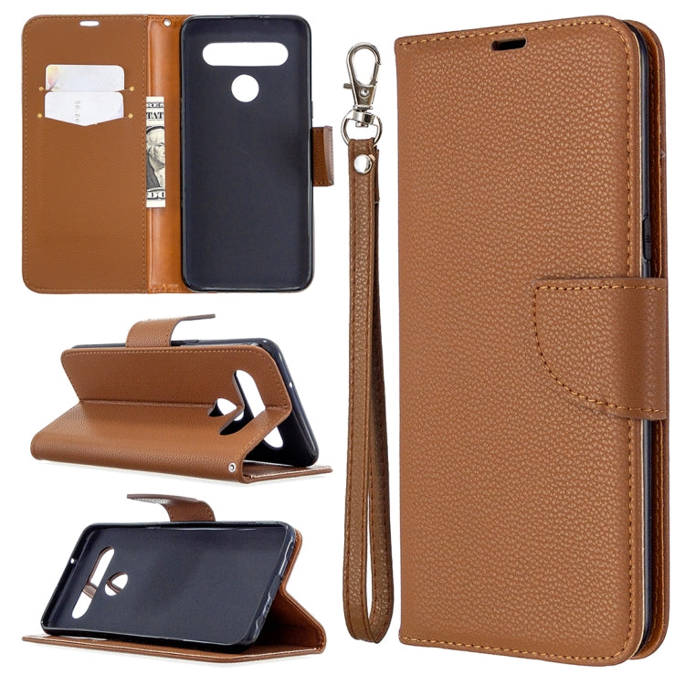 Funda de Cuero para LG K61 Litchi Texture con Soporte, Ranuras para Tarjetas, Billetera y Cordón (Marrón)